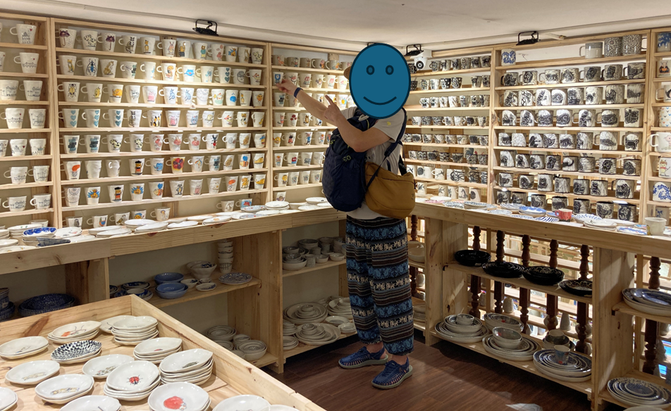 こちらのお店、店内にはオリジナルの可愛い陶器が壁いっぱいにディスプレイされてます。